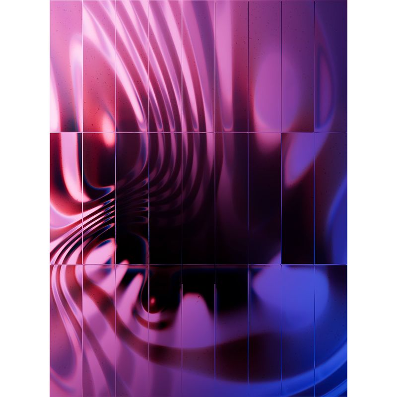 The interplay between the tint of the glass and the colors of the backdrop, along with lighting elements, creates a unique visual experience. The artwork showcases a rich spectrum of noise variations, from soft, smooth textures to vigorous, dynamic distortions through which the complexity of each piece is heightened.